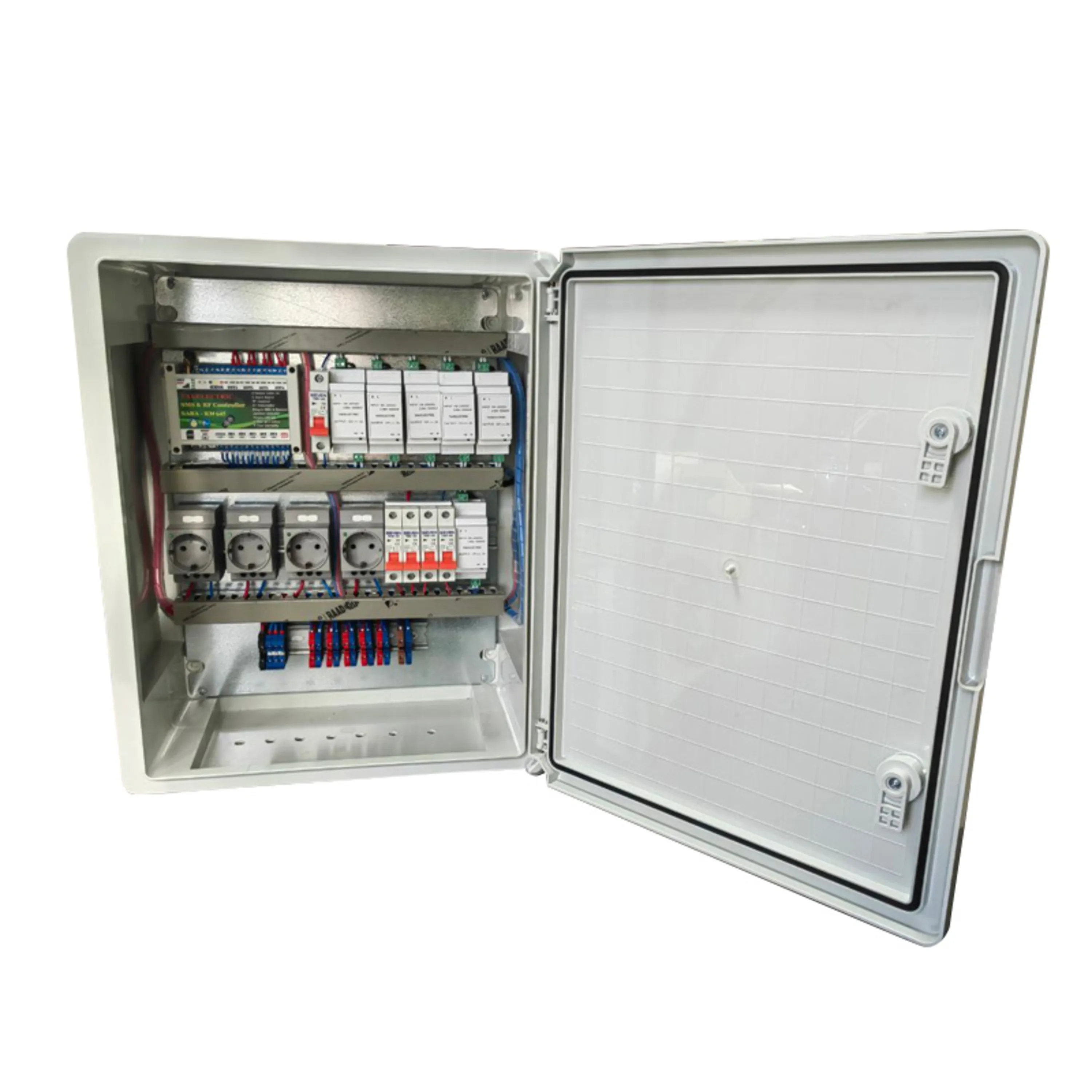 این تابلو برق هوشمند کنترل از راه دور است که توسط ارسال کد های دستوری با تلفن همراه در قالب پیامک یا زنگ زدن به دستگاه ( تک زنگ یا ارسال دستورات با کلید های روی تلفن ) می توان خروجی های دستگاه را که به وسایل و تجهیزات برقی خود متصل کرده اید کنترل کنید و یا با اتصال حسگرهای مختلف به ورودی های این دستگاه بر محیط اطراف استخر پرورش ماهی نظارت داشته باشد . با تحریک ورودیهای این سیستم یک پیامک هشدار یا تماس تلفنی بر روی تلفن همراه تان ارسال شده و شما را از وقوع رخداد یا اتفاقی در محیط سیستم برق رسانی و ... مطلع می سازد .