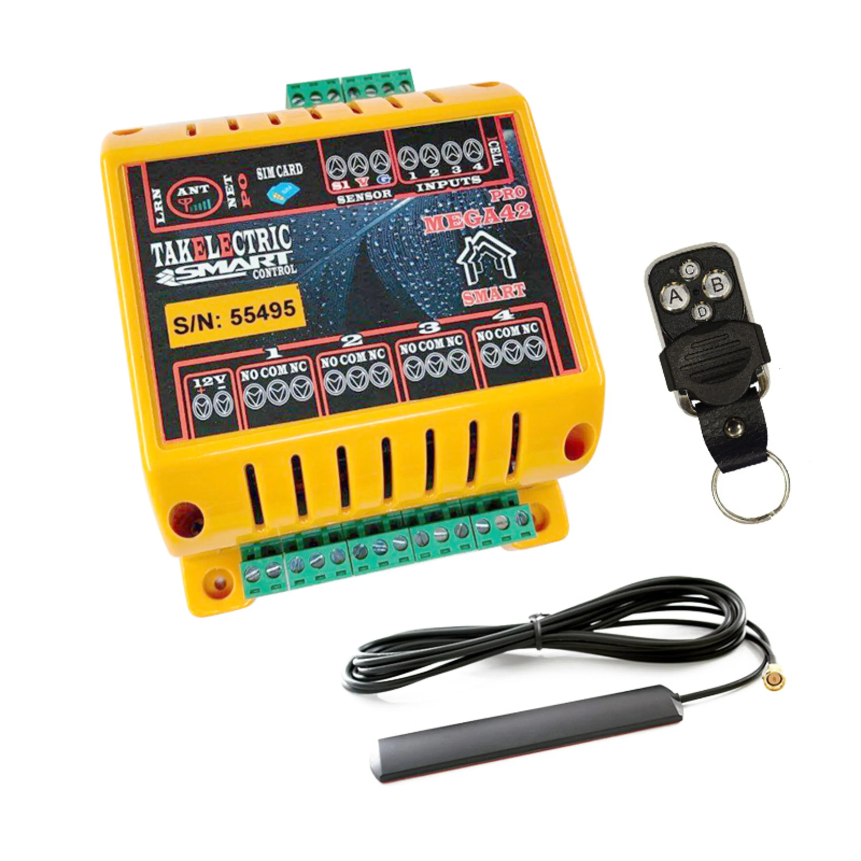 دستگاه MEGA42 - 16A کنترل راه دور 4 کانال با رله های 16 آمپر با امکاناتی کم نظیر که به عنوان پرچمدار کنترلرهای سیمکارتی با ویژگی هایی خاص از سایر کنترلرها متمایز شده است دستگاه Mega42 Pro تک الکتریک که خاص ترین امکانات در آن در نظر گرفته شده است مانند : تایمر قابل برنامه ریزی ، ریموت رادیویی ، دزدگیر ، سناریو نویسی ، منشی صوتی جهت اجرا فرامین خروجی بصورت سخنگو