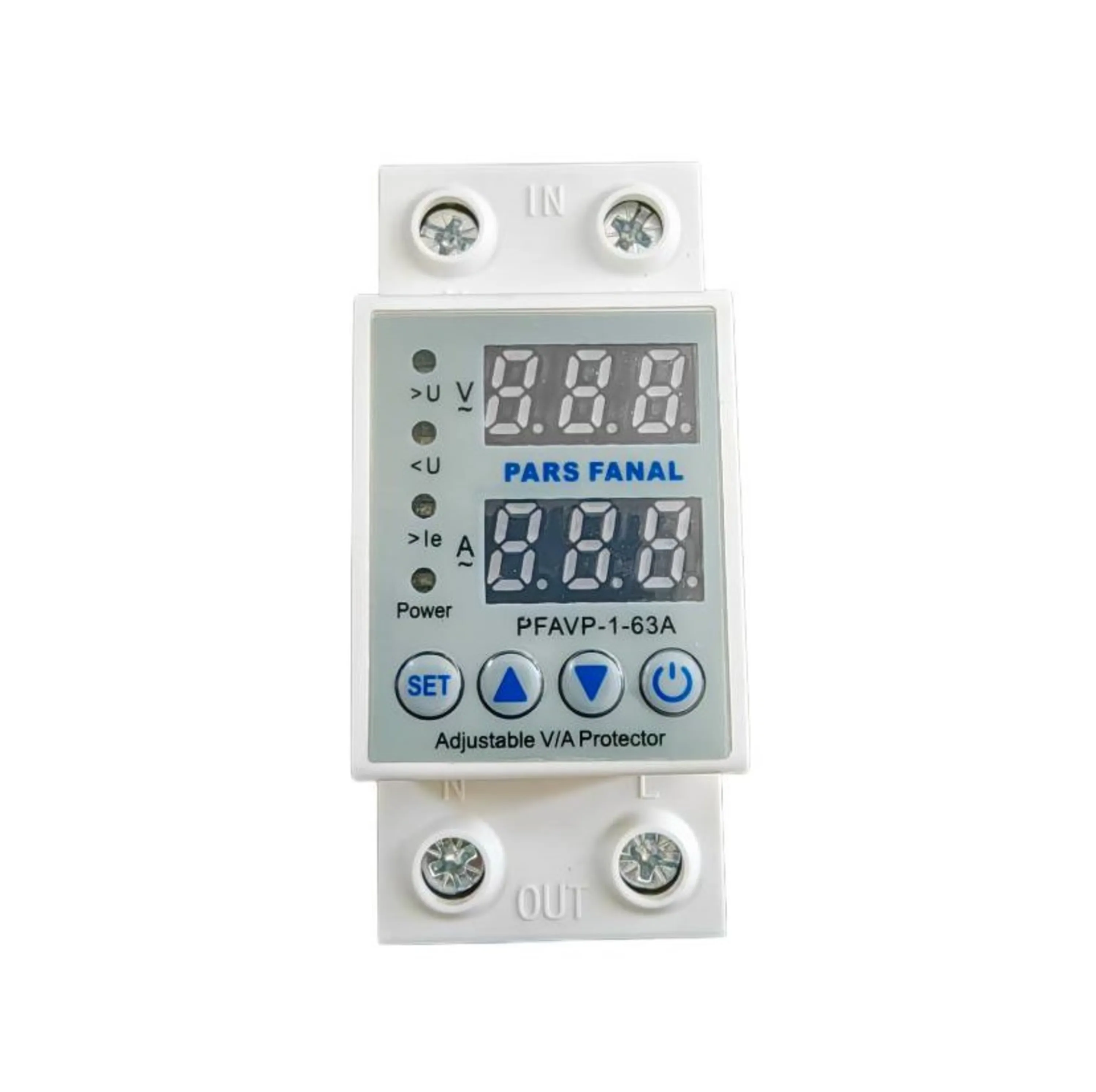 محافظ ولتاژ جریان PFAVP پارس فانال با ولتاژ نامی 220VAC دو پل با جریان نامی 63 آمپر