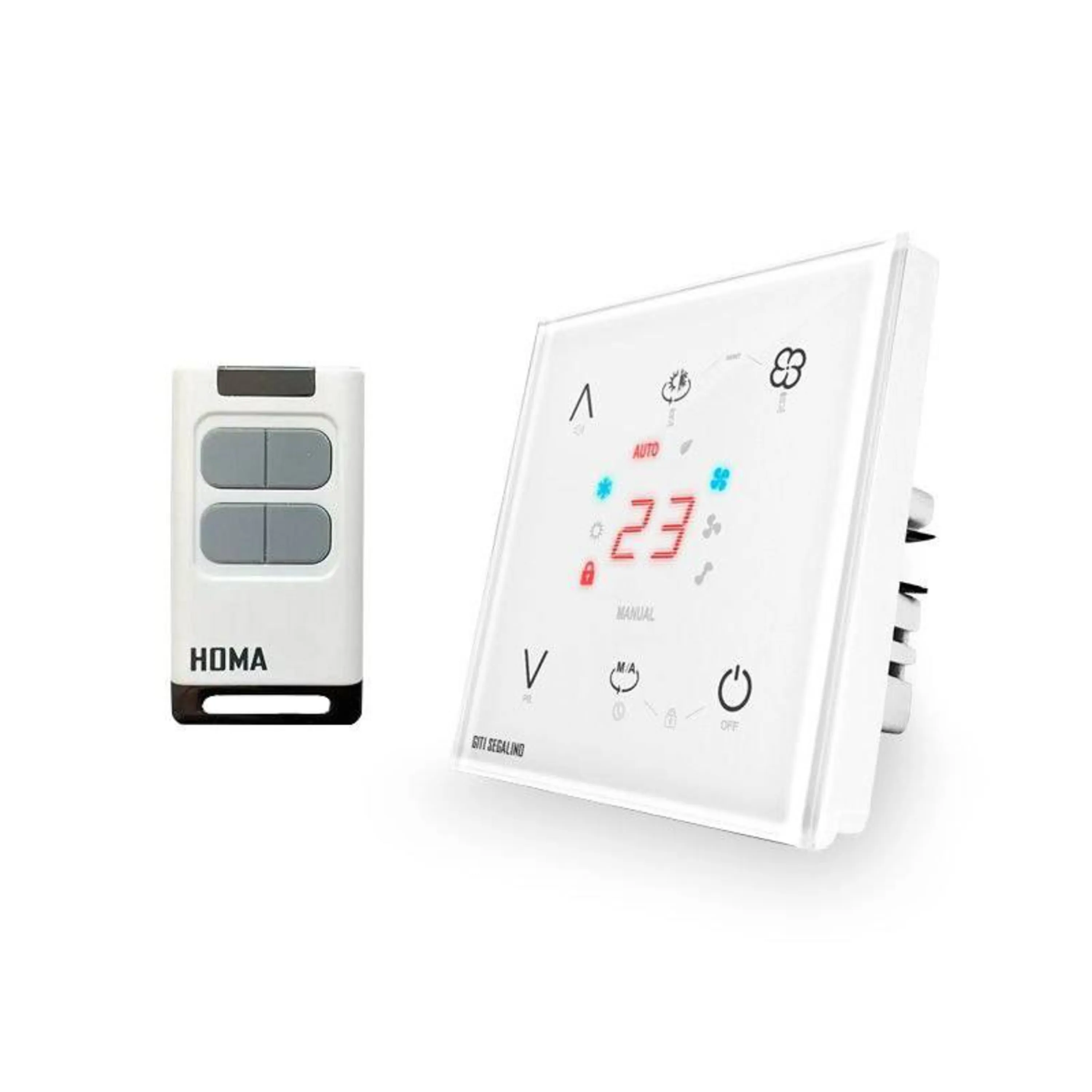 ترموستات فن کویل تک و سه دور هوشمند با کنترل از راه دور رادیویی با صفحه نمایش لمسی و قابلیت نصب توکار