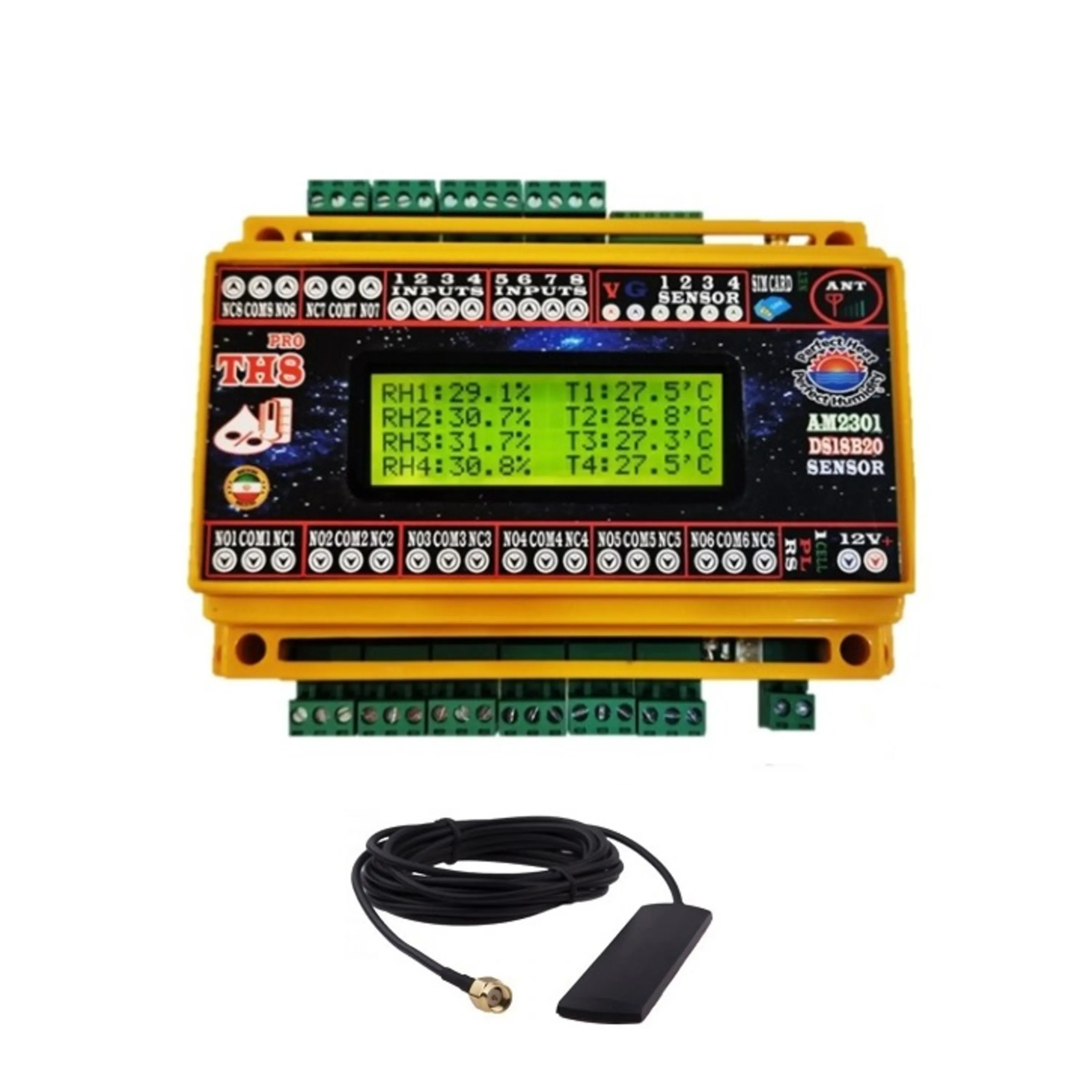 سیستم کنترل راه دور پیامکی گلخانه با قابلیت نصب چهار سنسور دما و رطوبت و دارای 8 ورودی مجزا دیجیتال و 8 خروجی رله