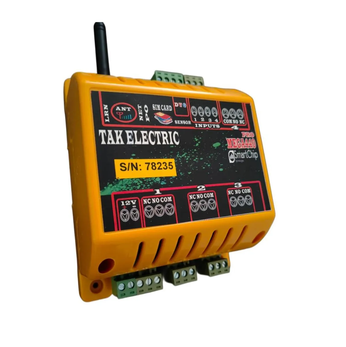 دستگاه MEGA440 PRO کنترل راه دور 4 کانال با رله های 30 آمپر با امکاناتی کم نظیر که به عنوان پرچمدار کنترلرهای سیمکارتی پرقدرت با ویژگی هایی خاص از سایر کنترلرها متمایز شده است دستگاه Mega440 Pro تک الکتریک که خاص ترین امکانات در آن در نظر گرفته شده است مانند : تایمر قابل برنامه ریزی ، ریموت رادیویی ، دزدگیر ، سناریو نویسی ، منشی صوتی جهت اجرا فرامین خروجی بصورت سخنگو