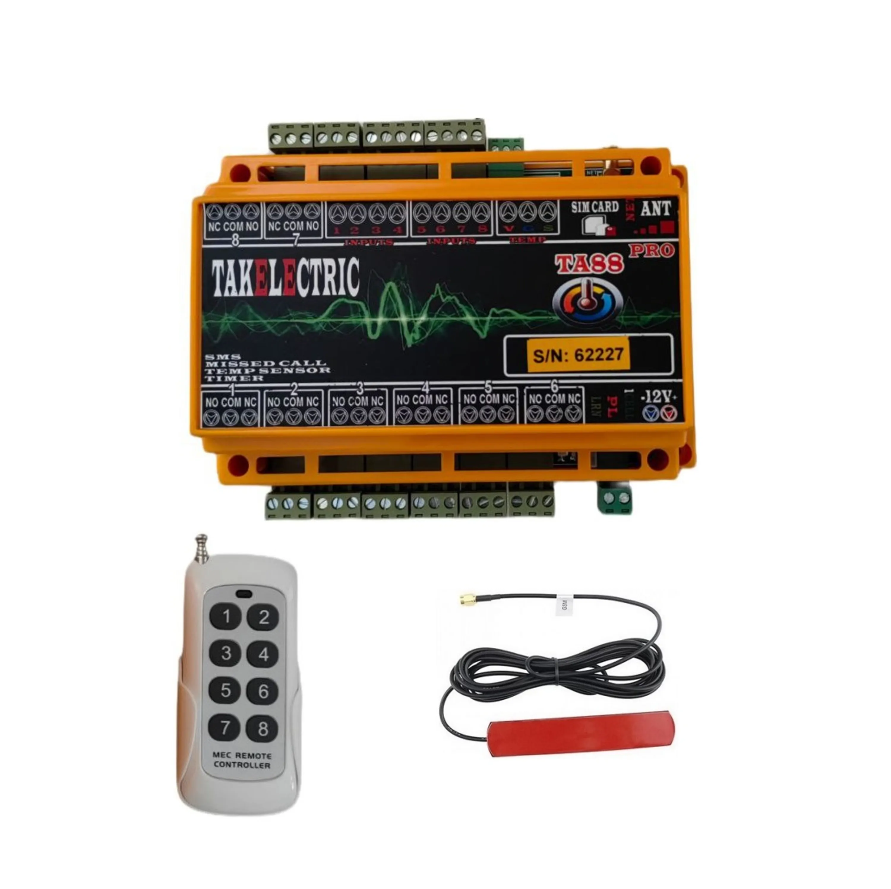 کنترل راه دور پیامکی 8 کانال بدون محدودیت فاصله همراه با ریموت رادیویی با قابلیت کنترل از حدود 100 متری و قابلیت تعریف سناریو و قابلیت برنامه ریزی با تایمر و قابلیت دزدگیر با امکان افزودن ریموت 4 کانال دزدگیر